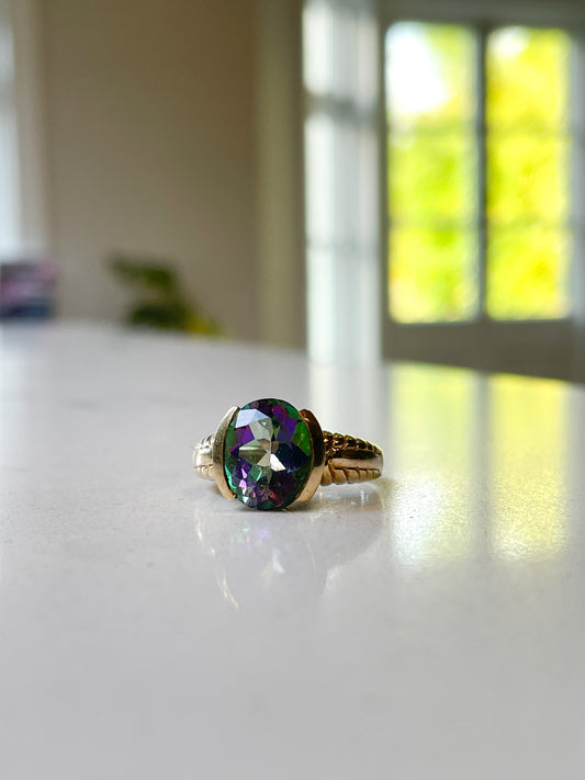 Chunky mystic topaz ring on 9ct gold