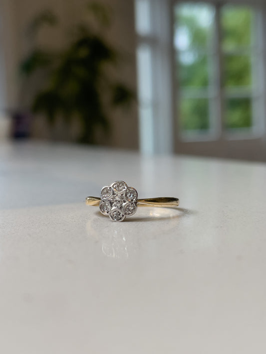 Vintage diamond cluster ring on 18ct gold