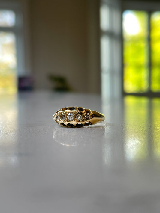 Antique diamond 5-stone ring on 18ct gold