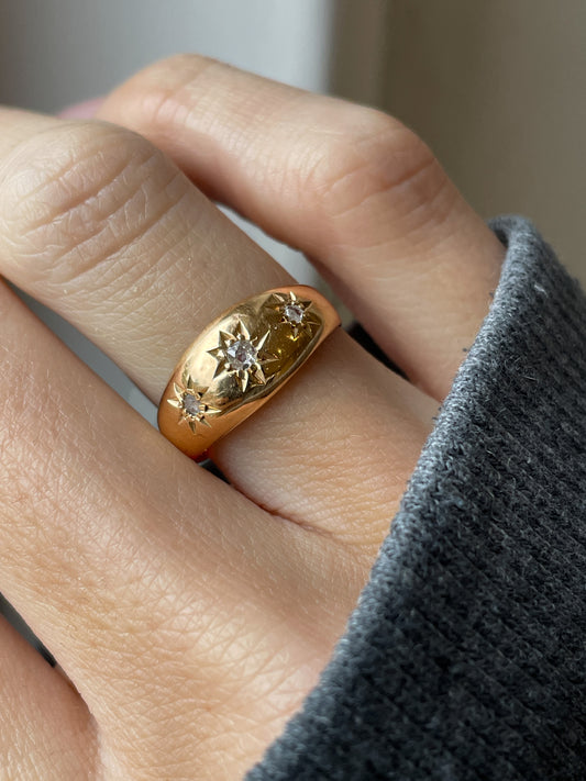 Antique starburst gypsy ring on 18ct gold