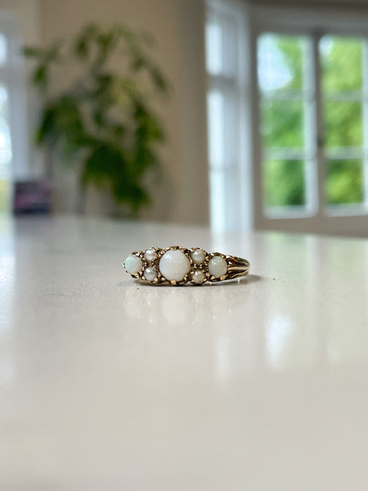 Vintage opal and pearl boat ring