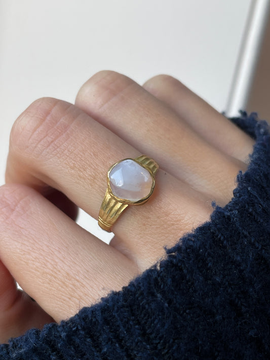 Hardstone ring with lace agate, on gold vermeil