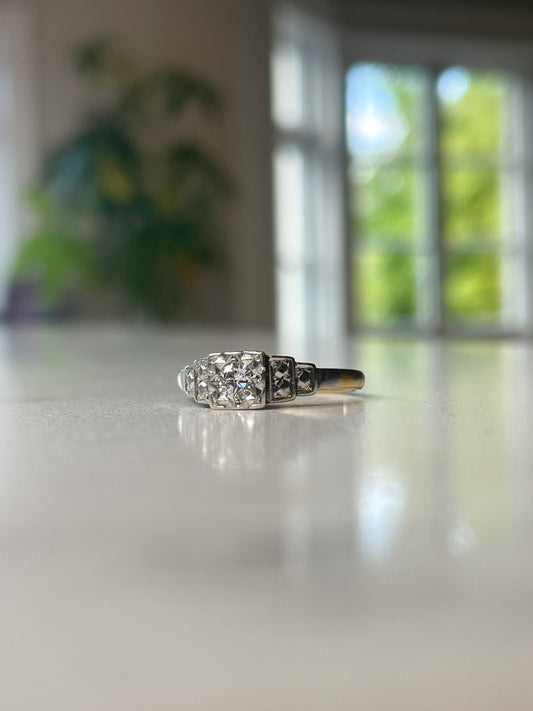 Antique art deco diamond solitaire ring on 18ct gold and platinum