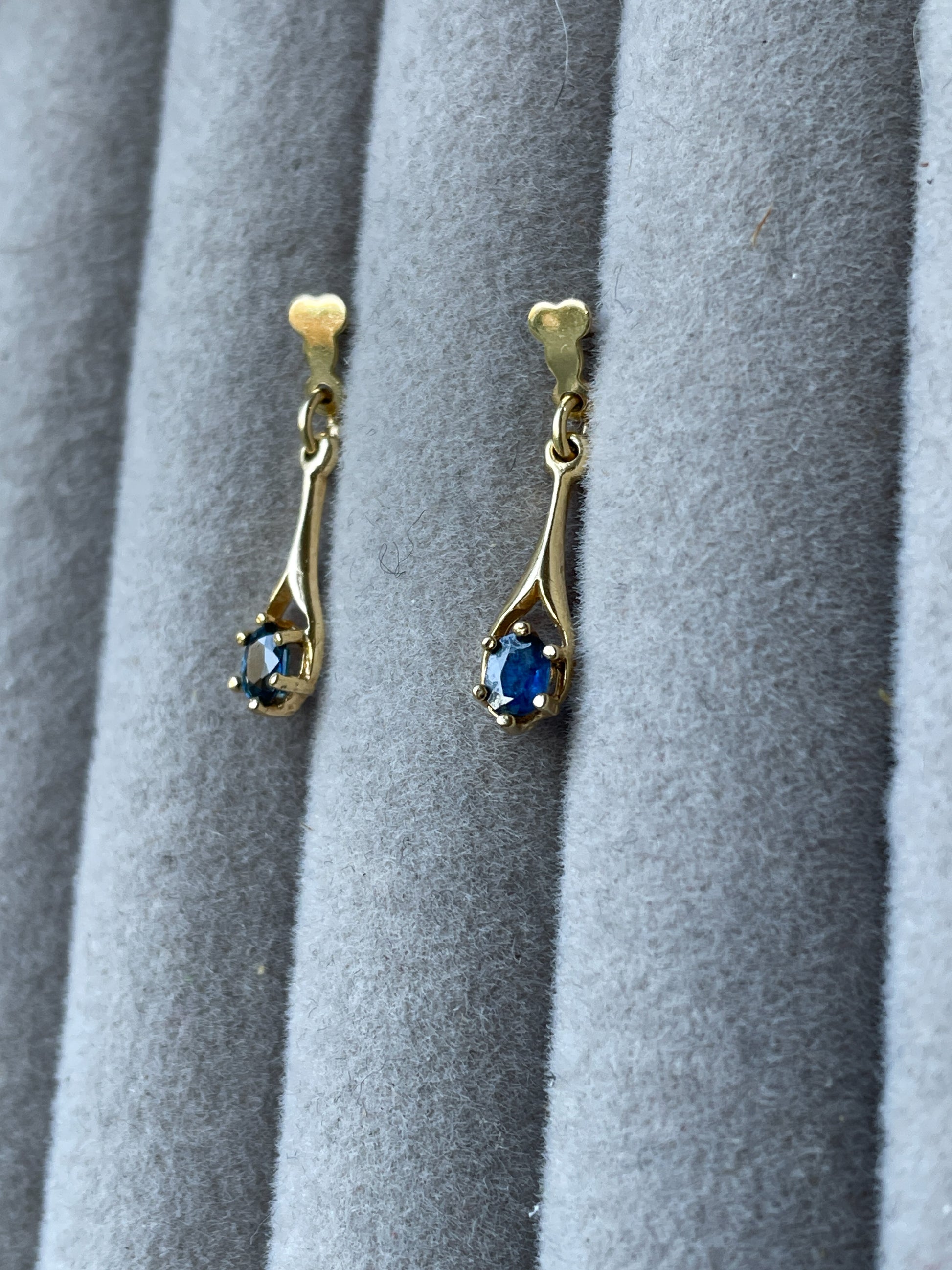 These earrings have a dark blue sapphire stone each, claw set into full hallmarked 9ct gold. Dainty enough for everyday wear but elegant enough to wear for a special occasion.