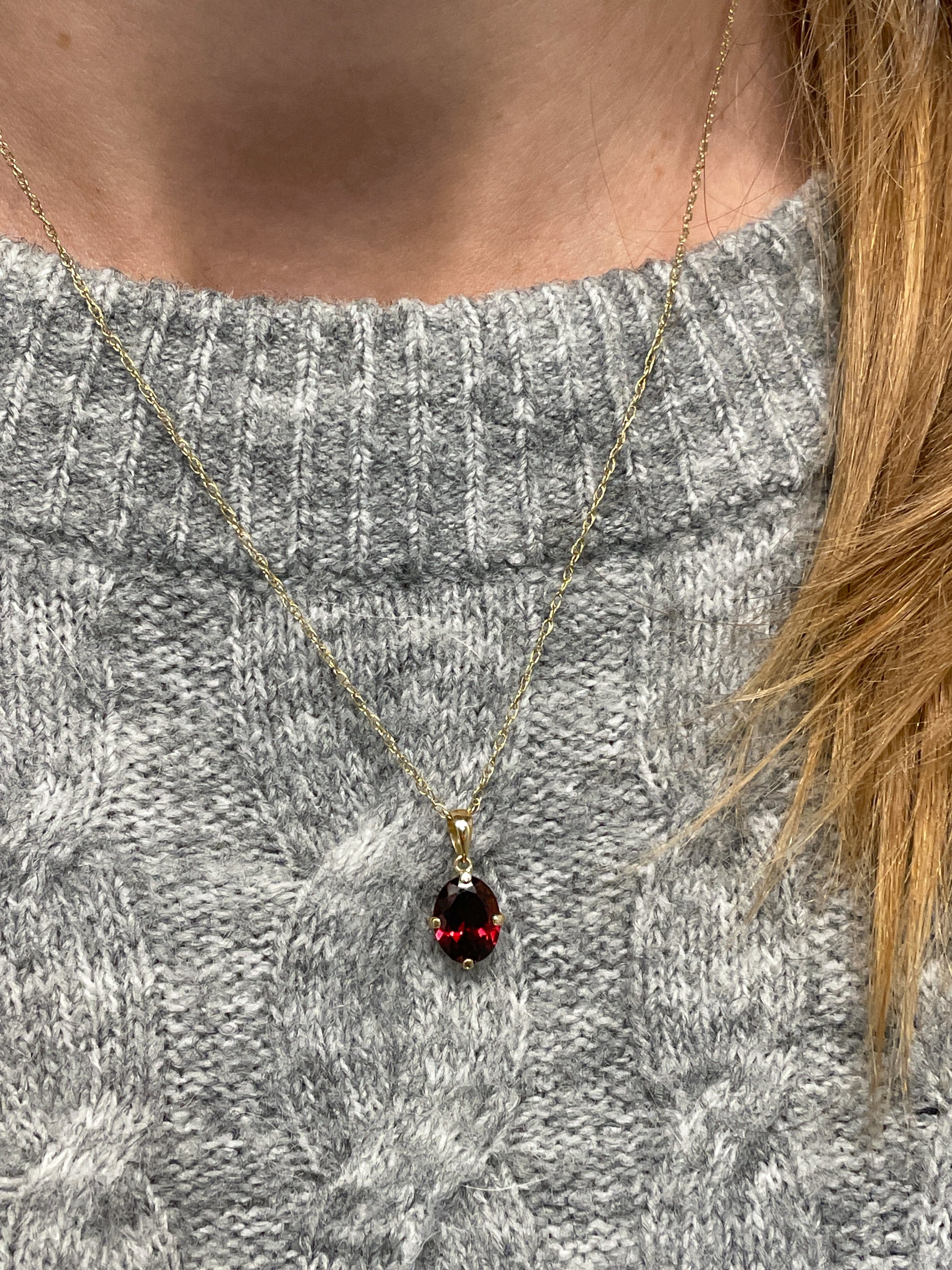 Contemporary garnet necklace pendant on 9ct gold with chain